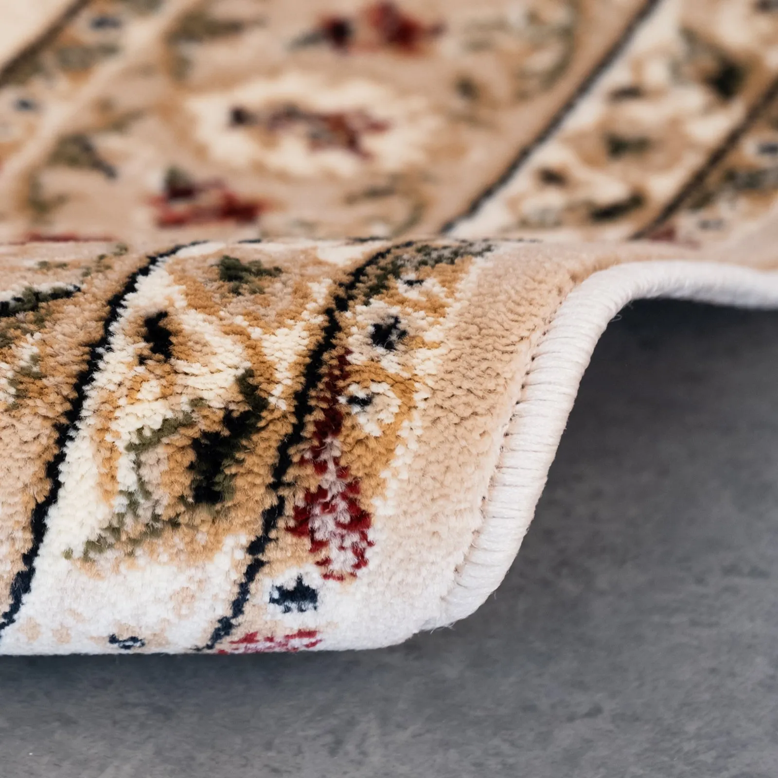 Confecționat din 100% material sintetic, acest covor oferă durabilitate și ușurință în întreținere.