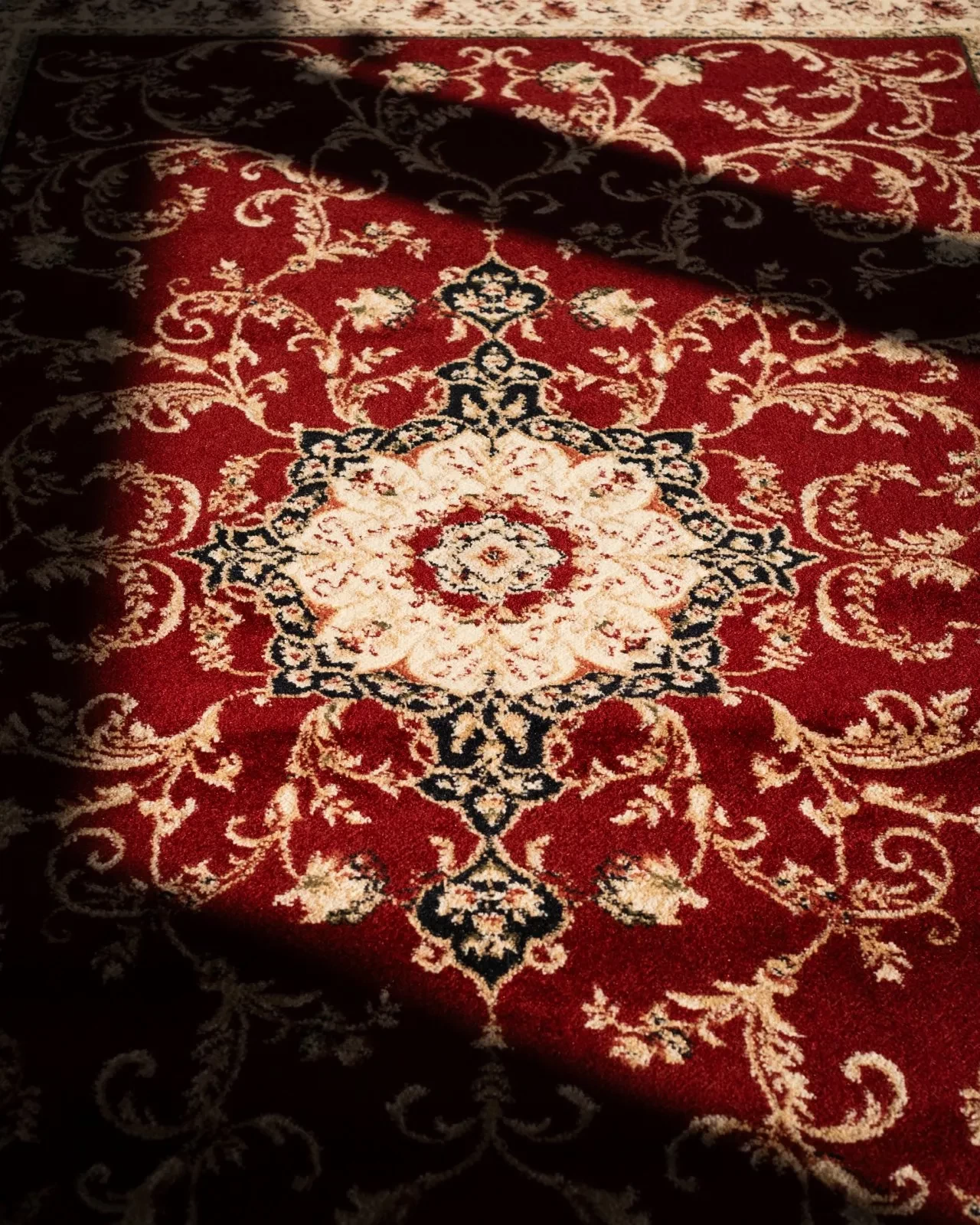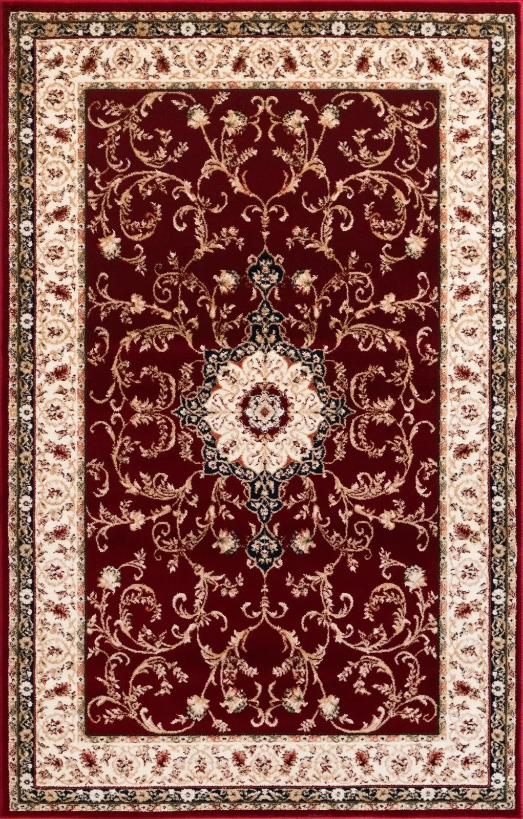Covorul Lotus 523-210 este o piesă de design clasic, caracterizată printr-un fundal roșu/grena îmbogățit cu motive florale și elemente decorative inspirate din stilurile baroc și rococo.